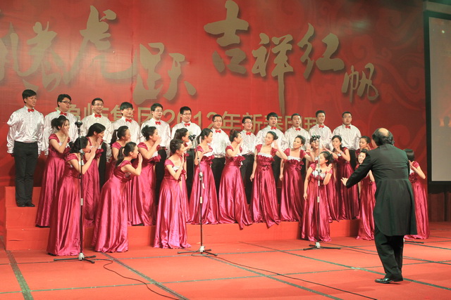 團(tuán)拜會(huì)上,象嶼人自編自導(dǎo)自演的春晚節(jié)目盛大登場(chǎng)。象嶼建設(shè)集團(tuán)獻(xiàn)演的歡慶歌舞《盛世中華》,身著民族節(jié)慶服飾的姑娘小伙們熱情奔放,氣勢(shì)恢弘;象嶼股份火辣的阿拉伯舞《美麗的姑娘賽比古兒》驚艷全場(chǎng),扭轉(zhuǎn),抖肩,甩胯,窈窕的姑娘們盡情地綻放著耀眼的青春;上海區(qū)域選送京劇《智斗》,叱咤上海灘的各位公司高管齊登戲臺(tái),無論是司令還是阿慶嫂,范兒倍足,調(diào)兒倍正,十足個(gè)性演繹,引發(fā)臺(tái)下叫好不斷;集團(tuán)公司聯(lián)合象嶼資產(chǎn)、象嶼配送、象嶼碼頭、象嶼建設(shè)表演的歌舞聯(lián)唱《歲月如歌》,高中基三級(jí)同臺(tái),老中青三代盡歡,不同風(fēng)格的歌舞串聯(lián),展現(xiàn)的是象嶼文化的包容與開創(chuàng);福建/南平象嶼公司逗趣的《小人舞》創(chuàng)意無限,傳神的表情映襯恰到好處的肢體動(dòng)作,笑點(diǎn)不斷,而很難想象的是每個(gè)人物都由雙人搭配,紅幕后是團(tuán)隊(duì)配合的默契;速傳物流活潑優(yōu)美的新疆舞《掀起你的蓋頭來》充滿戲劇色彩,群舞韻律動(dòng)感,對(duì)舞火花擦撞,多情的青年男女追尋著炙熱的愛情,也寓意著象嶼人勇于追求心中美好的向往。春晚在晨帆合唱團(tuán)歡快的《陽光進(jìn)行曲》中成功落下帷幕。團(tuán)拜會(huì)現(xiàn)場(chǎng)歡樂、祥和,晚宴期間穿插的抽獎(jiǎng)活動(dòng),更讓驚喜的歡呼尖叫聲接連不斷,公司為辛勤一年的員工們準(zhǔn)備的豐厚大禮,掀起現(xiàn)場(chǎng)一次又一次的高潮。